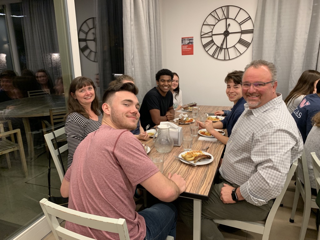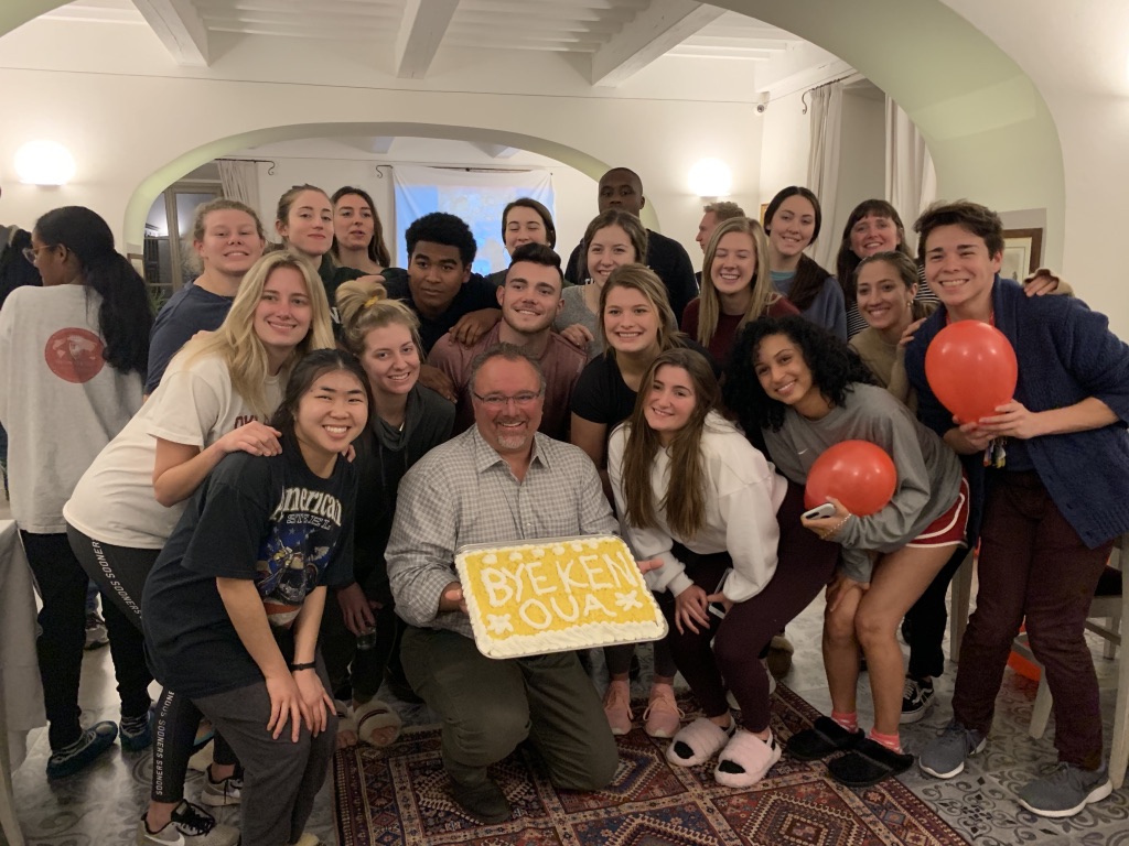 While riding along the Grand Canal in Venice, our Vaporetto pulled to the side to allow the Carnevale water parade to pass by. Front row seats! If you haven’t seen the water parade before, here is the 10 minute show of the 2019 Carnevale Water Parade!Sigrid and Ken dining with our students at OU-A’s “Monastery” student living area (beautiful facility)A going away surprise party for Ken. What an amazing, thoughtful, and talented bunch of Price College students. I can’t wait to see them all back at OU this fall.